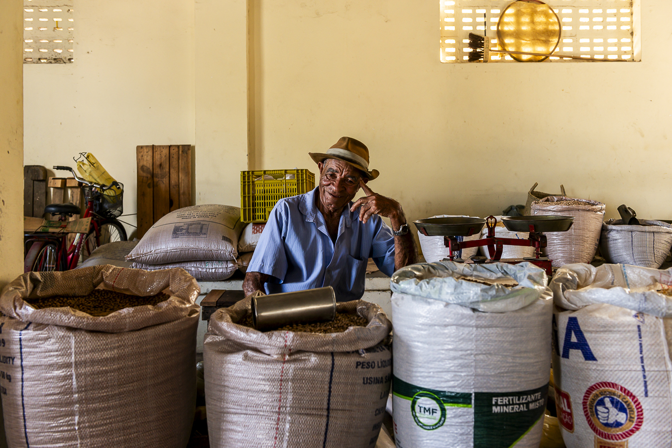 Entre sacas pesadas e balanças antigas, um homem se destaca. Sentado entre montes de grãos, ele carrega no rosto um sorriso sereno, mesmo diante da rotina árdua. Seu gesto é de acolhimento, sua presença, de resistência. A fotografia, nesse contexto, torna-se testemunho de uma economia afetiva, onde o trabalho manual se entrelaça com histórias de vida e vínculos comunitários.